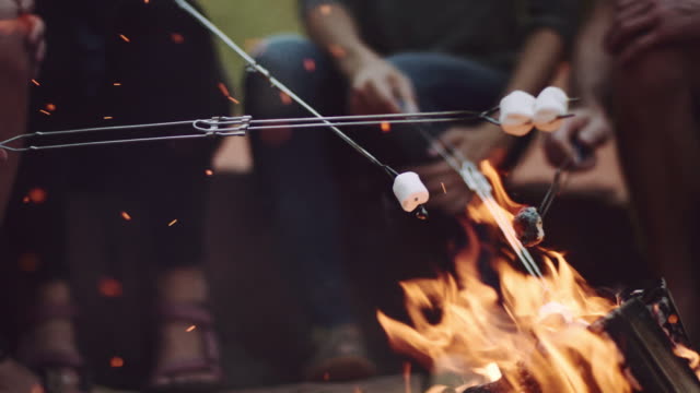 Closeup of a group of young adults roasting marshmallows over an open fire ← Previous Next → Closeup of a group of young adults roasting marshmallows over an open fire